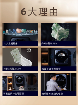 如为女士内裤和袜子设计的深度除菌模式,西门子内衣洗衣机采用了先进的60℃高温除菌技术,通过持续30分钟的除菌洗,不仅有效分解并去除衣物上的顽固污渍,还能高效杀灭99.99%的深层细菌和真菌。而针对男士内裤的洗涤程序,则聚焦于解决日常生活中难以避免的尿渍和汗渍问题,通过冷水洗涤配合两遍漂洗的巧妙设计,既有效去除了污渍,又避免了高温可能导致的材质损伤。除此之外,还特别设置了婴儿衣物洗涤程序,采用温和的洗涤模式与适宜的水温,确保了宝宝衣物的柔软与安全,避免了化学残留和硬物摩擦可能给宝宝娇嫩肌肤带来的刺激。