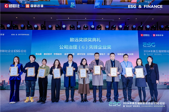 2024年11月29日,第五届财联社企业ESG论坛暨“致远奖”颁奖典礼在北京盛大举办。财联社“致远奖”,旨在表彰积极践行ESG理念的企业,塑造行业典范和榜样。立志做百年企业、追求可持续发展的华帝股份在本次活动中喜获“公司治理(G)先锋企业奖”荣誉。
