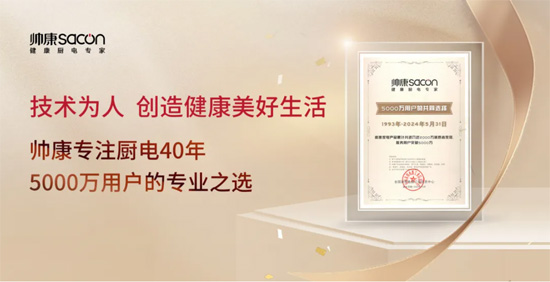 正是帅康这种对产品的匠心坚守以及持续不断的产品升级策略,才赢得了5000万用户的信赖与支持。今天,帅康作为健康厨电专家,坚持“技术为人,创造健康美好生活”的企业使命,持续推动技术升级、产品创新,积极拥抱产业变革,不断引领行业向前发展。未来,帅康将持续聚焦中国厨房生活,为提升中国家庭的烹饪体验而不断努力,让爱与温暖在厨房中不断延续和升华,为更多家庭带来健康美好生活。