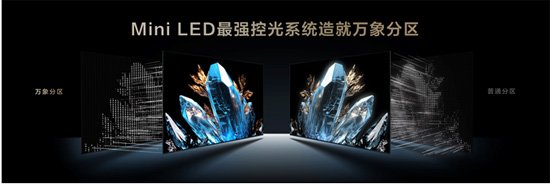 作为行业最早布局Mini LED赛道的电视企业,TCL基于多年来的深耕和积累,对Mini LED底层技术进行升级,实现从背光到成像的完整链路系统级的技术突破,包括发光芯片、透镜技术、OD设计、控光算法和屏幕等。基于此,TCL研发了当下Mini LED最强控光系统——万象光晕控制技术,采用这一技术的分区便是万象分区,控光效果是普通分区数倍,为消费者带来了前所未有的Mini LED画质体验。