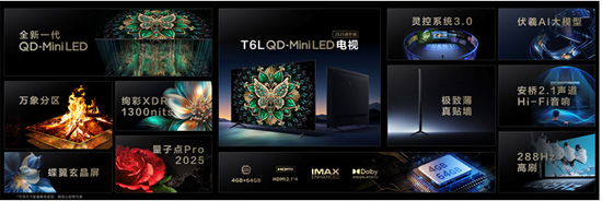 而在此次新技术发布会上亮相的TCL T6L QD-Mini LED电视,除了搭载万象分区、绚彩XDR、量子点Pro 2025、灵控系统3.0、伏羲AI大模型等行业顶尖科技外,还采用拥有超高对比度的蝶翼玄晶屏、2.1声道的安桥Hi-Fi音响、288Hz高刷等硬核配置,极具质价比,将进一步刺激TCL的销量增长,巩固TCL“全球第一”的向好态势。