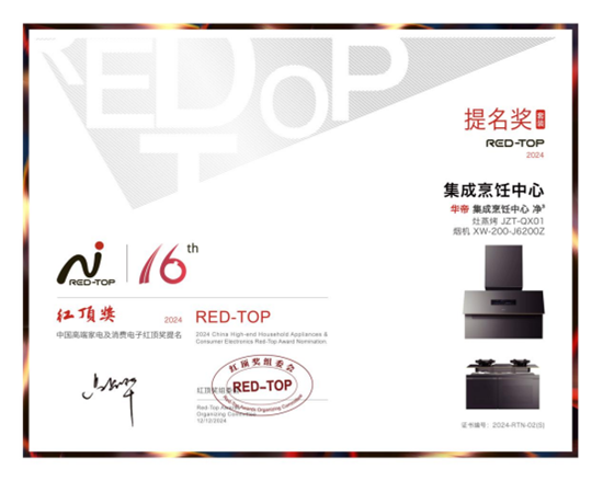 正是因为在科技创新、产品品质、用户体验和品牌向善等方面的卓越表现,华帝赢得了广大消费者的认可和信赖。其不仅连续多年蝉联中国厨电市场领先地位,还多次荣获国内外知名奖项,此次荣获红顶奖,再次证明了华帝在厨电行业的领先地位和创新能力。