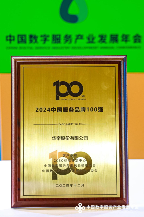 历经300多天的严格筛选和专业测评,通过社会公开投票以及科学评审,华帝股份有限公司共斩获两项大奖,分别为“2024中国服务品牌100强”、“2024年度客户口碑奖”。