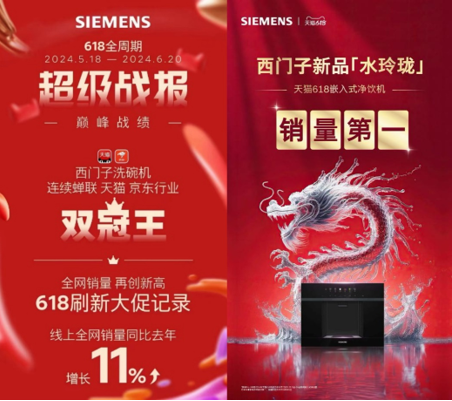 在科技进步和消费需求升级的驱动之下,智能化、绿色化、套系化的高端家电潮流仍然势不可挡。2024年,西门子家电凭借智能科技和大师全嵌美学的双引擎助力,不断满足消费者对高品质智能家电家居生活体验的构想。从角逐国际权威设计到引领可持续绿色家电浪潮,再到从激烈的品牌营销赛场脱颖而出,西门子家电摘得多项权威大奖,例如AWE艾普兰奖、绿点中国绿色技术大奖、可持续发展价值奖、艾菲效果营销奖金奖。家电行业榜单数据亦印证了消费者对品牌的喜爱,其中西门子洗碗机于天猫、京东618活动实现销量夺冠,西门子嵌饮机获天猫净水器热卖榜第一。