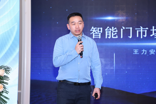 王力安防科技有限公司智能产品部副总监林海龙在会议上讲解了《2024智能门市场现状及技术发展趋势》,林总表示,智能门现在的复合增长率处于高水位,市场未来可期,从长远发展来看,智能门行业将呈现出一体化、AI 技术融入、材质创新、可进化系统、平台互通五大发展趋势。在此行业背景下,王力安防科技有限公司凭借在安全门与智能锁领域的深厚积累,自 2017 年起投身智能门产品研发,始终坚持以消费者为导向,打造更具优势的产品,为消费者带来更多优质的智能家居体验。
