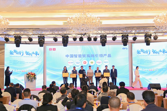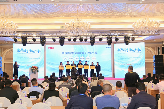 由中国五金制品协会专职副理事长、制锁分会秘书长吕基英女士、中国日用五金技术开发中心主任毕智涛先生为“中国智能锁高端引领产品”进行授牌,分别为: