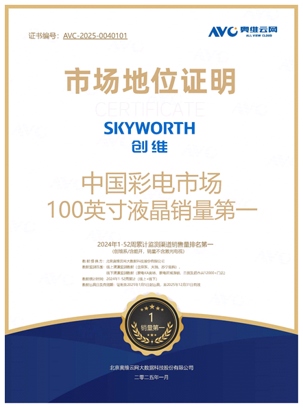 创维百吋电视系列取得全国销量冠军的辉煌成绩,是品牌技术实力和产品线布局共同作用的结果。未来,创维将继续秉承“用户至上、创新驱动”的发展理念,不断提升产品品质和用户体验,推动大屏电视市场的持续繁荣和发展。同时,创维也将继续加强技术研发,丰富产品线布局,为用户提供更加多样化、智能化的电视产品,让每一个家庭都能享受到高品质的观影体验。