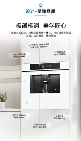博世「水如意」S8 Plus嵌饮机采用全嵌入式设计,更好地融入厨房、餐厅、客厅、书房、阳台等多元家居场景,释放更多生活空间,轻松实现家居一体化。此外,产品机身以金属哑光背板,搭配一体化玄武黑或天鹅白晶瓷玻璃面板,简洁美观而又极具品质,适配多种风格;更搭配专属收纳抽屉,实现收纳自由。由内而外,优雅灵动,与空间美学灵活互融。