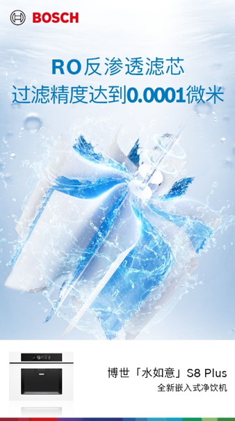现代家庭对健康饮水的标准不断提高,每个家庭成员都希望能享用干净、健康的饮用水,然而,传统的饮水方式已难以满足对水质安全的高要求。博世「水如意」S8 Plus嵌饮机采用原装杜邦RO反渗透滤芯,过滤精度为目前市面上最高的0.0001微米1级别,5年长效2过滤,搭配多效复合滤芯可有效吸附水中各种杂质及污染物,包括水管铁锈、泥沙、余氯、细菌、病毒、农药残留、重金属残留、挥发性有机物等,去除率高达99.9%,让每口水滴滴纯净、口感甘醇。
