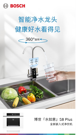 在为家庭健康保驾护航的同时,博世「水如意」S8 Plus嵌饮机还能满足生活中多样的饮水需求——无论是早晨舒适的一杯温牛奶,午后清爽的一杯冰果汁,还是晚间休憩的一壶热花茶,只需轻轻一点,冰热随心更享自在。