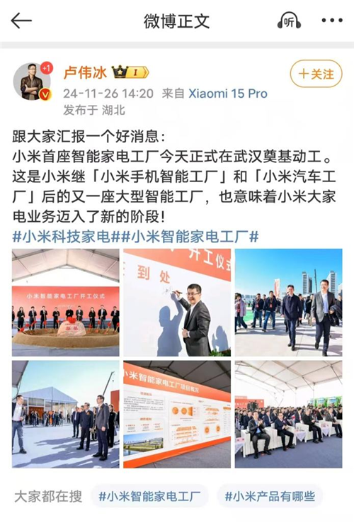 但是,在工厂的建设阶段,却因为卢伟冰的一些言论,引发了一波来自家电从业者们对小米空调为代表的小米大家电产品的议论,甚至有声音直指卢伟冰“是外行”。