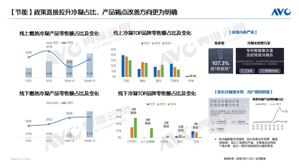 据奥维云网(AVC)统计,线下冷凝式燃热均价自2023年起大幅攀升,有望从3753元涨幅至2025年的6000元以上。COLMO、A.O.史密斯、卡萨帝、海尔、万和等品牌纷纷推出新品,美的凭借其创新的“无尾”技术,推出了一级能效且无冷感的燃热,实现了能效比的大幅提升,引领了行业向更高能效标准迈进。