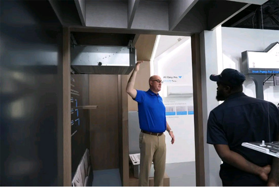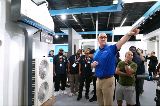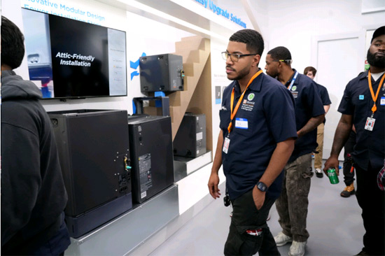延续美的空调旗舰展厅综合性销售与服务枢纽的定位,佛罗里达旗舰展厅在产品销售和热泵技术展示之余,还具备了技术培训与行业合作的功能。开业当天,展厅接待了奥兰多职业培训学校Orange Technical College的学生团队,未来也将为更多本地安装工和学生提供安装和维修实操培训课程,为本地行业人才储备贡献力量。