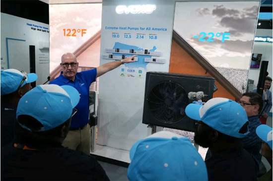 此外,美的创造性地在风管领域引入了最小6K的风管机和245mm超薄高静压风管,进一步拓宽了风管机的适用空间,降低了安装限制。展厅还展出了北美最高能效窗式热泵、兼容3吨AHU风管的一拖多系统和超高能效热泵热水机,为南部家庭用户带来了全气候、全建筑、全场景的节能热泵解决方案。