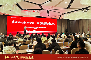 谋定而后动。会上,德意智家董事长高德康系统性梳理了丽博家居在2024年获得的成就,并发布了《2025年度丽博家居零售业务战略规划》,提出了丽博家居未来发展的“九大战略”,从强化产品创新、规范门店运营、优化交付服务、扩大招商规模等多个方面进行了阐述。产品方面,明确打造S级板材产品这一重点工作,同时对成品家具、五金产品、高定工艺等方面提出了更高的标准和更严格的要求。门店运营上,则是强调以“主动营销”为核心,推进门店重装、团队专业培训等策略,实现精细化管理。同时,狠抓“一次按时成功交付”也将作为2025年工作的重中之重,严格推进落实。
