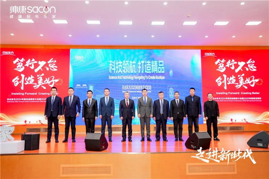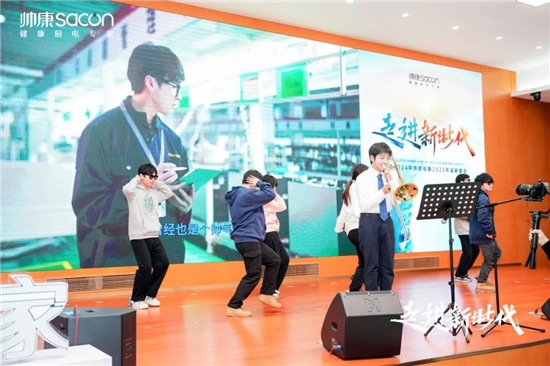 日出东方控股股份有限公司董事长、浙江帅康电气股份有限公司董事长徐新建在连云港总部发表重要讲话,帅康员工通过大屏幕同步观看。徐董事长回顾了企业2024年的发展历程,着重肯定了在经济下行、市场竞争激烈的大环境下,企业顶住重重压力所取得的优异成绩。徐董事长强调,帅康作为一个拥有41年深厚底蕴的厨电专业品牌,大胆变革,未来大有可为。谈及2025年的发展规划,徐董事长明确指出,我们要坚持长期主义、拥抱专业主义、拥抱年轻化、知识化。在新的一年里坚定信念、携手并进,以饱满的热情和坚定的步伐,一起笃行不怠,创造美好!