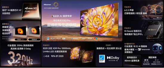 为了全方位满足影游爱好者的高阶追求,海信电视E8Q Pro全球首发4K 170Hz原生高刷,330Hz动态刷新率,基于全面提升的屏幕素质,通过AI画质芯片H7的算力加持,同步实现控光和画面0延迟。