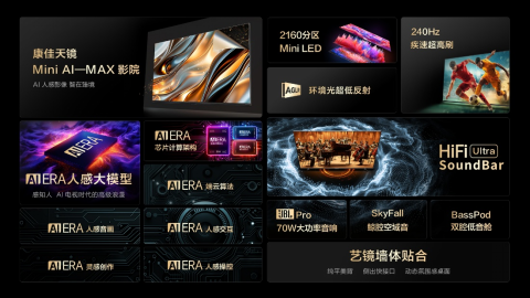 据悉,康佳100A8 Mini AI-MAX影院电视,拥有100吋巨幕搭配艺镜墙体贴合设计,成为私邸大宅壁画电视的首选。依托康佳自研的“AI ERA人感大模型”,它具备千级Tops端云全局算力,通过全局计算芯片协同人感影像引擎和精控背光芯片,在电视端侧部署轻量化大模型,云端部署千亿级语音大模型,可提供强大的人感交互与创作能力,呈现出高质量AI影像,音画质表现均十分出色,综合体验感满分。