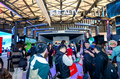 人潮涌动的长虹展区,新产品、新科技、新场景、新体验吸引展会参观者流连忘返,全面AI化的生活在这里触手可及。