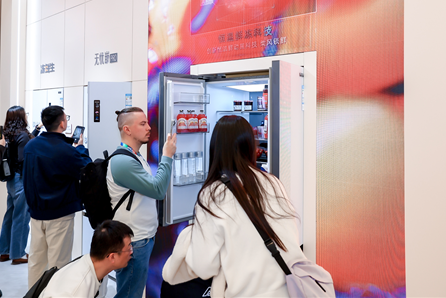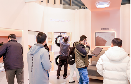 在冰洗区域,长虹美菱纯色系列新品高容全嵌冰箱——大白鲸冰箱颇为引人注意。60分钟即可AI急速制冰与超薄平嵌的结构设计,让年轻人的家居生活美感与体验感快速升级。此外,M鲜生、冻鲜生、无忧嵌pro、全隐嵌冰箱、立式冷柜、冰吧等多款家用、商用制冷设备,以及蓝氧洗烘套装等产品将长虹美菱品牌的技术发展做了全面的呈现。