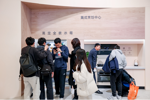 生活厨房区域,长虹厨卫携智能与美学一体的Al智慧集成烹饪中心和健康的系统性“全屋热水&净饮”方案亮相,向消费者展示智慧、舒适、健康的厨卫生活空间新范式。