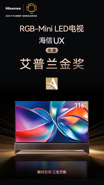 作为家电与消费电子行业最具公信力的奖项,艾普兰奖始终聚焦技术前瞻性与用户体验的深度融合。今年的评选从全球范围内遴选出最具代表性的创新产品,其金奖更是对年度尖端科技与生活美学的双重致敬。海信RGB-Mini LED电视获奖,不仅因其突破了传统的显示技术,更因其对用户真实需求的精准洞察,在画质、尺寸、能效等维度实现系统性升级,重新定义了高端电视的价值标准。