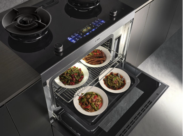 传统厨电“各自为战”,让多菜同烹效率不佳。方太通过重构厨电之间的协同逻辑,支持蒸烤同烹、双温同烤,真正实现一日三餐一锅出。方太集成烹饪中心蒸烤一体机支持温湿双控,高精度湿度传感器拥有精准感知能力、温湿动态精控算法,让腔内温度更加精准;双擎热风速控系统,让食物受热更均匀,烘烤效果更出色。此外,方太集成烹饪中心采用了FOTILE FIKS 智能生活家系统,通过全新的多触点交互式智能操控系统,实现了人、厨房设备、厨房场景的有机互联,支持烟灶联动、烟烹联动,更加智慧、高效。