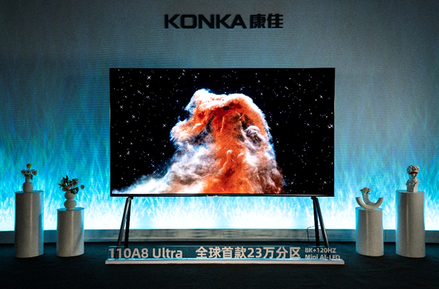 康佳110A8Ultra电视画质性能优异,给用户带来了更震撼、更好看的视觉体验,在85英寸+大尺寸、8K分辨率产品区域,填补了LCD、OLED与MicroLED显示之间的多元化产品空白,并且工艺成熟,可快速实现产品的上市推广。近年来,MiniLED背光电视以其出色的画质表现赢得了市场的广泛认可,MiniLED背光电视市场的快速增长直接带动了显示产业的发展,同时也成功推动了HDR、分区等显示技术的创新与应用。110A8Ultra创新显示技术的应用,既提升了MiniLED背光电视的市场竞争力,也为整个显示行业树立了新的技术标杆。
