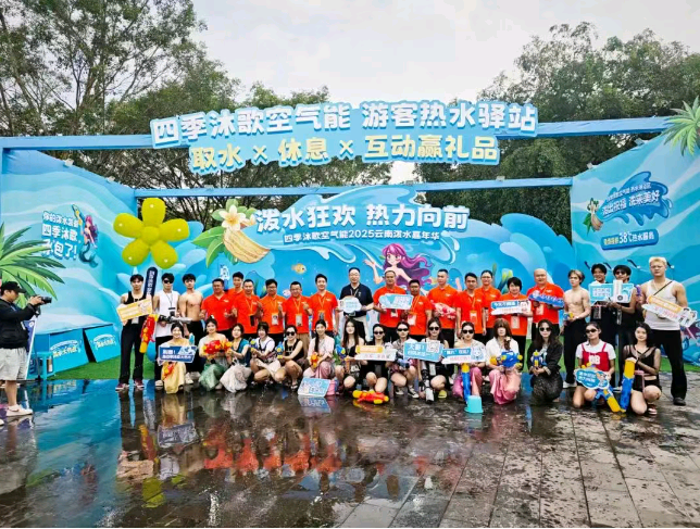 4月11日-13日,四季沐歌集团联合芒市市政部门盛大开启了以“泼水狂欢 热力向前”为主题的空气能2025云南泼水嘉年华活动。今年的云南泼水节,四季沐歌空气能热水成为了瞩目的焦点,「空气能游客热水驿站」和「热水补给站」,构建“一站式暖心服务矩阵”,免费提供热水取用、淋浴清洁、毛巾、休息、饮用水及简易医疗服务,以“38℃大热水”为媒介,传递四季沐歌“用心温暖亿万家庭”的品牌理念,通过沉浸式服务场景与互动体验,实现品牌与用户的深度情感连接。