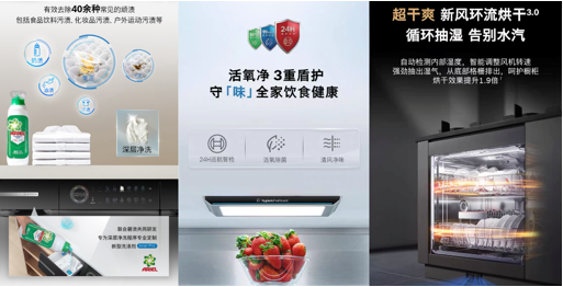 如博世新一代6系活氧洗烘套装,在设计语言、洗涤科技及智能烘干等方面实现突破,搭载与碧浪共同研发的“深层净洗”、以及“蒸汽除皱”两大新程序,为现代家庭开启高端智能护理时代。博世全域智净M8十字门冰箱活氧版则配备零度维他保鲜技术,并配有活氧净3重盾护及铂金净风技术实现全域净化,不仅能实现更为精细的除菌健康储存,还能延长食材的可食用时间,实力践行绿色可续生活。在碗碟清洗方面,博世V10新风洗碗机则通过新风环流烘干技术,实现餐具除菌洁净,又可降低能耗,为家庭带来更绿色的餐具清洁解决方案。