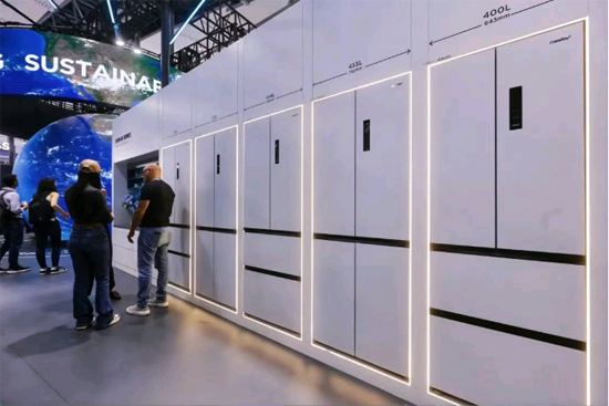 美的冰箱聚焦主题搭建,重点推出“Space Master”高容系列冰箱产品。美的冰箱深耕全球用户冰箱使用场景调研,着力在减小箱体发泡层等关键技术上,实现行业内相同尺寸下,容积更大的产品愿景,解决用户家庭空间有限、食物储存有限的痛点。本届广交会冰箱展区中,来自60cm、70cm,甚至90cm不同宽度的冰箱产品,完美迎合用户各种家居储存需求。与此同时,冰箱事业部还同步展示制冰机、酒柜等产品,彰显品牌打造全品类智造实力,并响应美的冰箱“ACCESSIBLE INNOVATION”前进口号的理念。