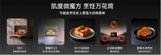 在生态型组织构建上,凯度人人都是产品体验官,每一个岗位入职前都会先进行下厨培训,直至可以熟练使用凯度产品,保证凯度的每一款产品都源自真实体验科技。同时凯度融入了“用心多一度”品牌服务态度,用心聆听、用心反馈,通过自组织的试错与反馈机制实现了众多技术突破。最典型的案例就是“微魔方”复合烹饪技术,将微波与烘烤、鲜蒸、空气炸、养生炖、大师焗等传统功能叠加复合。并通过任选蒸烤炸炖炒焗中三种模式自由组合,DIY创造出了理论上多达数千甚至上万种烹饪方案。