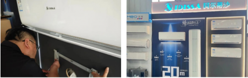 例如考虑到乡镇市场自建房空间大,部分产品在设计上通过“全导风板“、超长超宽出风口等设计实现“20米超远风”,满足一机覆盖两厅的大空间需求;