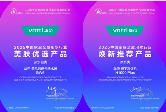 作为中国高端厨电的领导品牌,华帝在此次论坛中表现亮眼,凭借在家庭用水领域的深厚积淀与创新突破,一举斩获三项大奖——华帝获得“2025中国家庭全屋用水行业(热水器类)焕新优选品牌”,华帝美肌浴热水器GW6i荣获“2025中国家庭全屋用水行业(热水器类)美肤优选产品”,华帝橱下净饮机H1000 Plus荣获“2025中国家庭全屋用水行业(净水类)焕新推荐产品”。