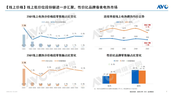 一是源于坊间传闻,头部品牌迫于业绩压力,决定以超低价抢夺市场份额,国补之后线上60L电热水器价格将下探至300元左右,12L燃气热水器价格将下探至350元左右。二是基于业绩判断,2025年一季度厨卫行业整体需求不足,增长乏力。奥维云网(AVC)监测数据显示2025年1-3月,电热零售额51亿元,同比下降2.2%,零售量398万台,同比下降4.5%;燃热零售额56亿元,同比增长2.9%,零售量272万台,同比增长0.6%。