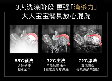 对于家中有宝宝或老人的家庭而言,餐具的卫生安全尤为重要。博世Z10 Pro洗碗机特别设置了行业首款专为宝宝餐具洗涤定制的护婴洗程序。该程序采用5重高温反复煮洗,参照巴氏除菌标准,带来更强的除菌消杀力。同时,新设的72℃高温强效漂洗功能,确保洗涤剂无残留,让宝宝餐具洗涤更加安心。