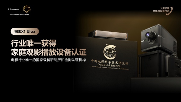 海信激光电视探索X1 Ultra还是行业唯一获得家庭观影播放认证的设备,支持HDR10+、杜比视界、IMAX Enhanced等多格式解码,并搭载WiFi 7技术(速率达30Gb每秒)与1T NAS云盘,实现“秒速下载、海量存储”。用户还可通过Filmmaker Mode,还原导演创作意图,真正“看原片、听原声”。
