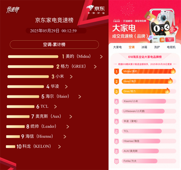 在国家以旧换新政策支持下,美的空调在2025年618大促中继续表现强劲,5月28日起,包揽各大主流平台销售榜首。5月28日晚8点,各平台618开启狂欢模式!消费券从当晚 20点持续发放至 6月5日0点,惊喜福利层层加码,不仅有机会赢取85折超值优惠,更能限时抢无门槛大额券,让清凉好物轻松带回家。恰逢端午佳节,美的酷省电空调、鲜净感空气机T6、无风感系列、全面风系列等产品成为爆款,销售数据一路飘红,增长势头迅猛。