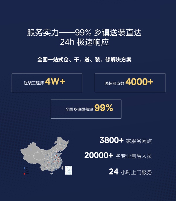 在服务标准上,美的坚持全环节可视、收费透明,覆盖范围广泛且严格把控服务流程,还提供个性化增值服务。全国一站式仓、干、送、装、修解决方案,实现了从生产到销售、售后的全流程打通。2小时预约、2小时完工的高效时效标准,搭配4W+送装工程师、4000+送装网点,乡镇覆盖率高达99%,并与淘宝、抖音等多平台实现系统开源互联。另一位经销商也提到,美的品牌认可度高,产品节能,销售工作轻松不少。建店补贴力度大,从选址到设备采购都有全方位支持。需求响应极为迅速,总部方案即刻送达。