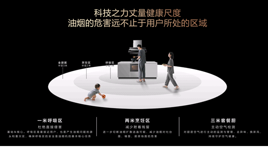 “全域治理”的锁定不止于用户所在的区域,从灶台上的一米呼吸区,到两米烹饪区和油烟可能逃逸覆盖的三米客餐厨地区,均可进行主动化、智能化的全域空气监管和治理。此外无论是新房装修甲醛挥发,老旧管道燃气泄漏,还是长期出差时屋内滋生异味问题,方太Y系列都能通过持续监测和换新,为用户带来清新的厨居环境。