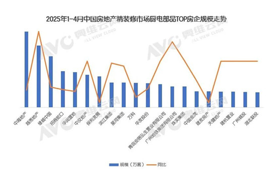 TOP3房企仅中海坚守,越秀地产增速显著从开发商阵营分析,2025年1-4月精装厨电六件套中,TOP3房企分别为中海地产、越秀地产、绿城中国,配套规模分别为2.34、1.91、1.58万套。与去年同期相比,TOP3房企仅中海地产坚守,越秀地产、中交地产、滨江集团、星河集团成功挤进TOP10房企,配套厨电六件套规模分别为1.91、1.01、0.77、0.77万套;从增速来看的话,越秀地产、中交地产、滨江集团、星河集团等增速明显,分别上升228.1、100、91.8、78.9个百分比。