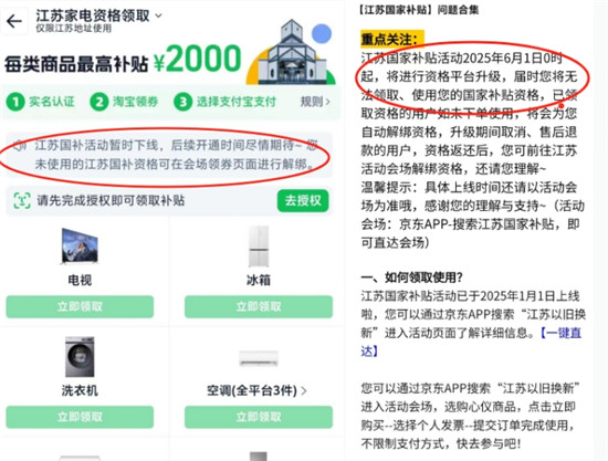但就是是在一片欣欣向荣的增长氛围中,也正是在一年一度的618年中购物盛典的关键销售节点,即上半年购物需求最旺盛的时刻,江苏以旧换新国补紧急叫停,着实令人大跌眼镜。