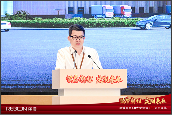 接着,丽博家居总经理高利见向来宾详细介绍了智慧工厂。他指出,4.0智慧工厂以自动化装备为基础,结合物联网技术的深度应用,将制造过程中的每个车间、每台设备、每个检测结果进行实时联接,融合了大数据、数字孪生等前沿技术,实现了柔性化生产与全过程数据追踪,大幅提升了生产效率与产品品质。