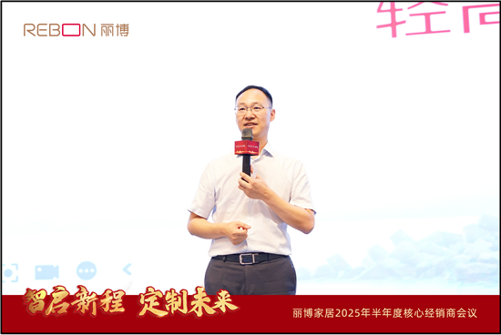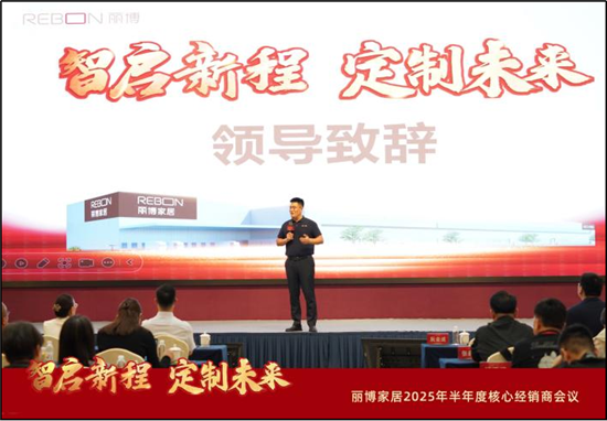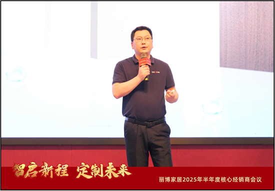会议伊始,德意智家营销总经理阮金成发表致辞。他充分肯定了丽博家居在2025年上半年取得的显著成绩,通过产品体系的持续优化、交付能力的显著提升以及S级差异化产品的核心优势,进一步筑牢轻高定品牌根基。展望未来,丽博将继续聚焦S级差异化产品的研发与推广,并开放姿态满足多元市场需求,携手合作伙伴继续坚定前行。