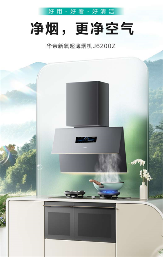 烟机作为厨房的核心电器之一,其焕新升级不仅仅是产品本身的更新换代,更是对整个厨房健康生活的一次全面进阶。在行业发展进程中,华帝率先提出“净洁厨房”体系,以行业头部品牌的前瞻性视野,重新定义现代厨房的健康标准。该体系从产品、空间、感官三个维度协同发力,全方位提升用户的厨房体验,致力于实现更健康、更轻松的厨居生活状态。