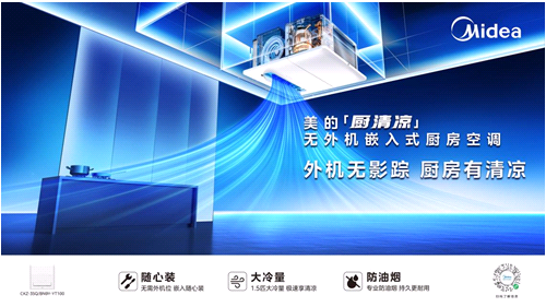 面对这场亟待破解的 “厨房孤岛困局”,美的无外机嵌入式厨房空调以 “随心装、大冷量、防油烟” 的设计强势突围,为千万家庭的烹饪空间带来清凉革命。