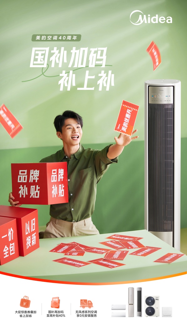为了回馈消费者,值此美的空调40周年之际,隆重推出“国家补贴+品牌补贴+以旧换新”三重福利体系。针对家中闲置的旧空调,美的推出以旧换新活动,至高可省1100元,宠粉钜惠至高40%,消费者还可享受大促惊喜券,至高减400元,让优惠再加码,真正实现“高端体验、亲民价格”。