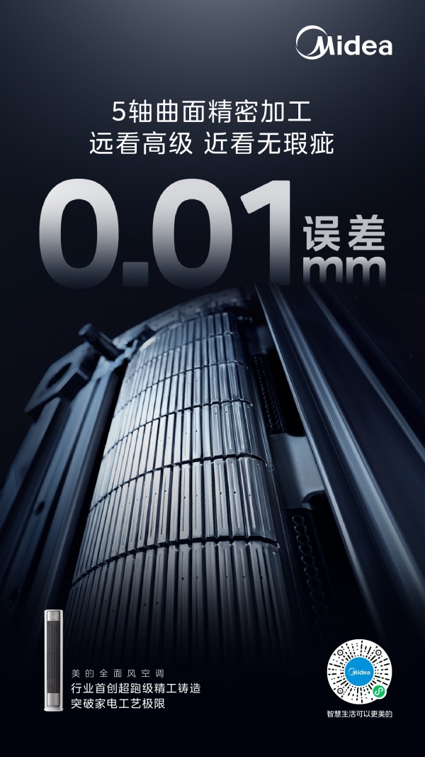 针对大户型、开放式空间,美的还打造了全面风柜机QM1,采用行业最大90%风口占比、270mm超宽幅风口,搭配1800m³/h大循环风量,能实现10米超远距双贴壁送风,全屋温差<1°C,同时能够实现65℃高温制冷与-35℃低温制热,从容应对极端气候,成就大空间舒适控温典范。