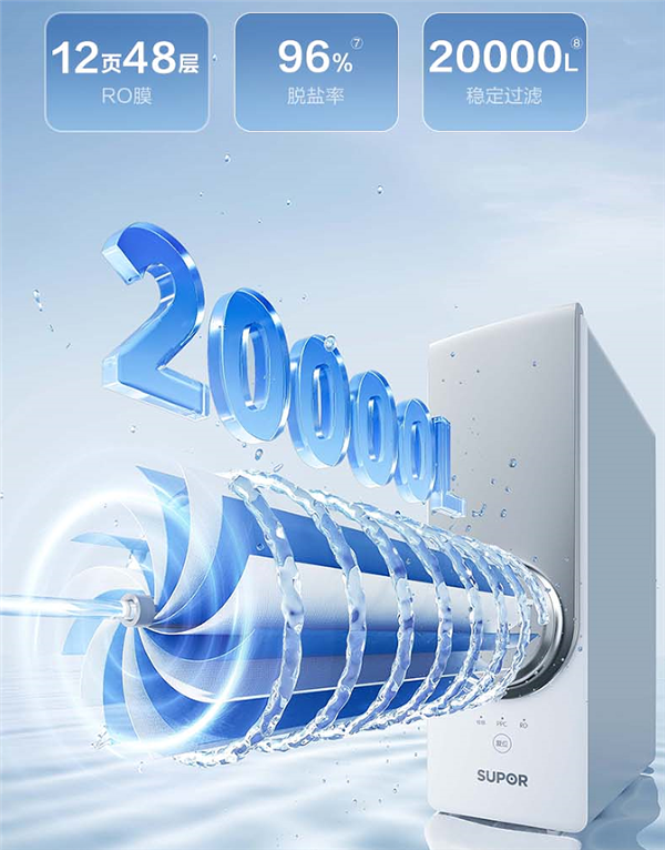 3D旋叠膜:20000L过滤量+5年长效+96%脱盐率,击穿“寿命短、口感差”痛点