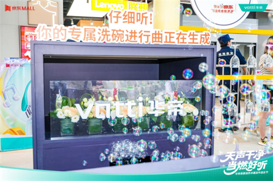 洗碗机・泡沫爵士俱乐部则以编钟造型陈列碗碟的艺术装置内置泡泡机,用户与装置合拍解锁“洁净认证pose”,同步聆听《慢慢喜欢你》等爵士民谣——歌曲节奏与洗碗机清洁频率的同频设计,让“全域精洗”卖点转化为听觉联想。